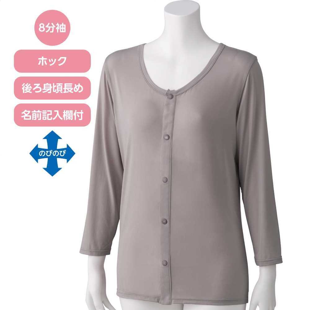 ■店長よりご挨拶 新年あけましておめでとうございます。 旧年中は「シニアライフスタイル楽天市場店」をご愛顧いただき、誠にありがとうございました。 新しい年を迎え、寒さの中にも清々しい空気が感じられる季節となりました。 皆さまにおかれましては、穏やかなお正月をお過ごしのことと存じます。 昨年は多くのお客様とのご縁に恵まれ、心より感謝申し上げます。 数あるショップの中から当店をお選びいただき、暮らしのひとときにお役立ていただけましたこと、 スタッフ一同、深く御礼申し上げます。 本年は丙午(ひのえうま)の年。 古くから、力強さと前向きなエネルギーをあわせ持ち、新しい流れを切り開く年ともいわれております。 日々の暮らしの中にも、小さな変化や新たな楽しみが生まれる一年となりますよう願っております。 本年も、皆さまの毎日が健やかで心地よいものとなりますよう、暮らしに寄り添う商品と、丁寧な対応を大切にしてまいります。 本年が皆さまにとって、穏やかで実り多い一年となりますことを、心よりお祈り申し上げます。 本年もどうぞよろしくお願い申し上げます。 ■当店を多くのメディア様にご紹介いただきました!! 当ショップ「シニアライフスタイル楽天市場店」リニューアルオープンに伴い、下記メディア様にご紹介いただきました。 多くのメディア様にご紹介を賜り、厚く御礼申し上げます。 朝日新聞デジタル / SankeiBiz / 読売新聞オンライン / サンスポ / NewsPicks / Infoseekニュース / ファッショントレンド / PC Watch / @nifty ビジネス / excite.ニュース / woman.excite / Newsweek / StartHome / ノアドット / bizocean / リセマム / NEWSCAST / 東京ビューティー / zakzak / 徳島新聞Web / SEOTOOLS / Mapionニュース / ビズハック! / Response / えんウチ / Barclay Global BIZ / NEWS Collect ※順不同【送料無料】スルッと着られる8分袖ホックインナー(婦人) S・M・L・LL グレージュ・ブラック 秋冬 介護衣料 施設 病院 プレゼント ギフト 誕生日 母の日 敬老の日 還暦祝い レディース シャツの上から上着を着用する際にもすべりが良いの着やすく、脱ぎやすい。 ●後ろ身が長めで腰が出にくい。 ●ボタンが留めにくい方でもラクにできるプラスチックホック。 ●名前記入欄付きなのでまとめて洗濯しても間違いません。 【サイズ】S、M、L、LL 【カラー】グレージュ、ブラック 【素材】ナイロン95%・ポリウレタン5%/ストレッチ素材 【原産国】中国製