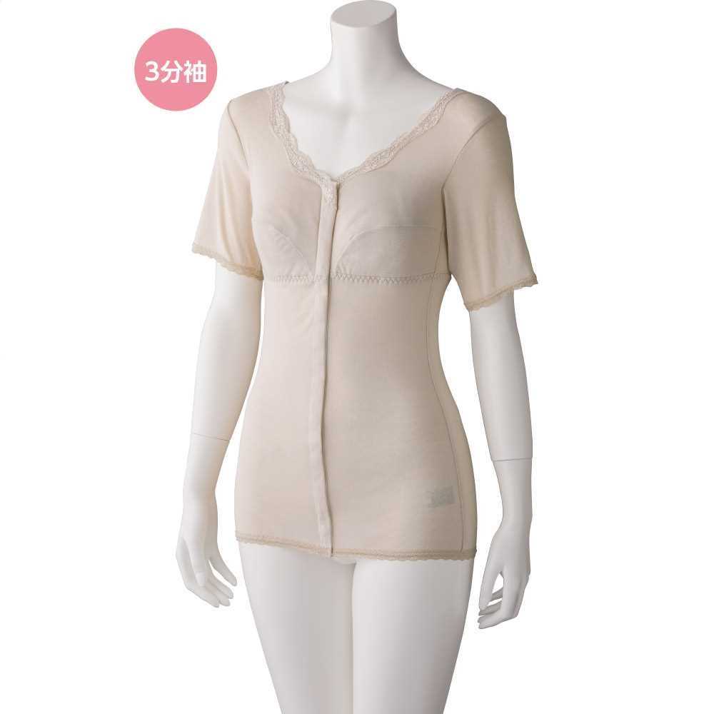 ■店長よりご挨拶 新年あけましておめでとうございます。 旧年中は「シニアライフスタイル楽天市場店」をご愛顧いただき、誠にありがとうございました。 新しい年を迎え、寒さの中にも清々しい空気が感じられる季節となりました。 皆さまにおかれましては、穏やかなお正月をお過ごしのことと存じます。 昨年は多くのお客様とのご縁に恵まれ、心より感謝申し上げます。 数あるショップの中から当店をお選びいただき、暮らしのひとときにお役立ていただけましたこと、 スタッフ一同、深く御礼申し上げます。 本年は丙午(ひのえうま)の年。 古くから、力強さと前向きなエネルギーをあわせ持ち、新しい流れを切り開く年ともいわれております。 日々の暮らしの中にも、小さな変化や新たな楽しみが生まれる一年となりますよう願っております。 本年も、皆さまの毎日が健やかで心地よいものとなりますよう、暮らしに寄り添う商品と、丁寧な対応を大切にしてまいります。 本年が皆さまにとって、穏やかで実り多い一年となりますことを、心よりお祈り申し上げます。 本年もどうぞよろしくお願い申し上げます。 ■当店を多くのメディア様にご紹介いただきました!! 当ショップ「シニアライフスタイル楽天市場店」リニューアルオープンに伴い、下記メディア様にご紹介いただきました。 多くのメディア様にご紹介を賜り、厚く御礼申し上げます。 朝日新聞デジタル / SankeiBiz / 読売新聞オンライン / サンスポ / NewsPicks / Infoseekニュース / ファッショントレンド / PC Watch / @nifty ビジネス / excite.ニュース / woman.excite / Newsweek / StartHome / ノアドット / bizocean / リセマム / NEWSCAST / 東京ビューティー / zakzak / 徳島新聞Web / SEOTOOLS / Mapionニュース / ビズハック! / Response / えんウチ / Barclay Global BIZ / NEWS Collect ※順不同【送料無料】フロントレース3分袖ホックインナー ピーチ・ベージュ M/L/LL 肌着 トップス 女性用 下着 おしゃれ肌着 前開き インナー 婦人用 レディース 介護 お母さん ギフト プレゼント 誕生日 敬老の日 母の日 着心地・機能性だけじゃない、エレガントなデザインに、気持ちも華やぐ! 胸元に幅広の花柄レースをあしらったエレガンスなホックインナー。 ボタンが留めにくい方でも、楽に留められ洋服に響にくく、 お肌に優しい綿100%で、1年通して着られる3分袖です。