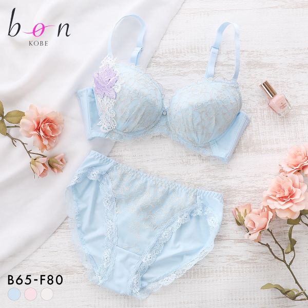 本当にノンワイヤー? スタイルアップが叶うノンワイヤーブラ&ショーツ 「バストが横に流れる」「ずり上がりやすい」「ホールド感が弱い」などのノンワイヤーブラに多い悩みを解消しながらスタイルアップできるブラ&ショーツセット。トップスやボトムスにひびきにくい繊細なフラットレース仕様でデイリー使いにぴったり。 きれいなバストラインへ導く内寄りパッド カップに内蔵されたパッドは下部に厚みを持たせた形状。胸を下から持ち上げてくれるので、バスト位置を高く見せ、美しいバストラインを作る。 裏地にはメッシュ素材を使用 カップ内側にメッシュ素材を使用しているため、さらりとした着け心地で肌当たりも優しい。 バストが流れにくい&ずれにくい サイドから背中にかけてベルト幅が広くなっているので、集めたお肉が流れにくく、美しいバストラインが持続しやすい。また、アンダーに太めのホールドテープを使用しているのでブラがずれにくく、ノンワイヤーブラに多い「ずり上がりやすい」というお悩みも軽減。 調整しやすいアジャスターとホック アジャスターが肩ストラップの前方にあるので、着用後にも調整しやすい。ホックは2列4段で自分のアンダーバストにフィットしやすく、快適な着け心地を叶える。 タグレス仕様で肌当たりが優しい 洗濯表示をホック裏に印字したタグレス仕様で、背中にタグが当たる違和感がありません。 サイドに段差がなくトップスに響きにくい ブラのサイドが段差のないフラットな仕様になっているので、タイトなトップスを着たときにも段差が出ず、美しいシルエットをキープできる。 総レースショーツ 華やかな印象の総レースショーツは、ヒップをソフトに包みシルエットを崩さないのが魅力。快適さと見た目の美しさの両方を叶えてくれる。 ※サイズ無料交換の詳細については ★こちら★
